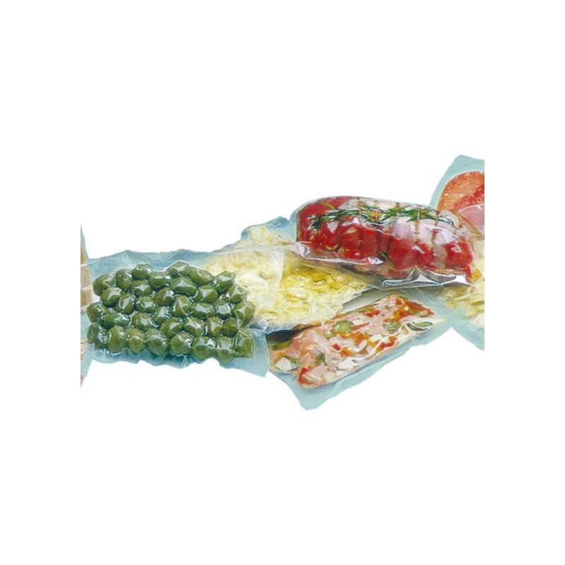 - 20 confections de 100 pièces.- Sachets lisses de cuisson pour sous videuses avec cloche.- Epaisseur 90 micron (My).- Côté soudure, le plus petit côté.- T° maximale de travail de -40°C a +110°C (testés en laboratoire).- Réalisation en polyéthylène-polyamide (PE-PA), certifié alimentaire.