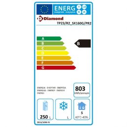 - Dimensions (LxPxH): 1228x805x926 mm - T° : 0°C /+8°C / 32°F/46°F - Portes GN: 2 - Étagères: 4 - Plan de travail GN1/6-100 : 12 - capacité : 394 L - Type de fluide réfrigérant: R290 - puissance frigo
