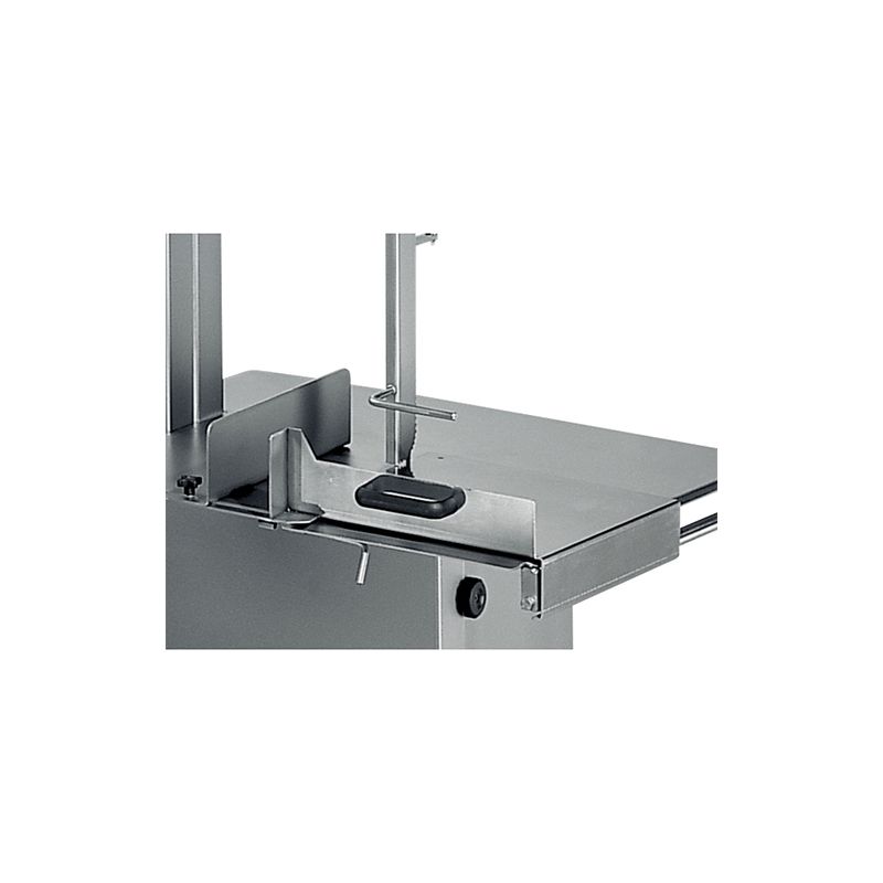Structure en aluminium anodisé ou vernis Bouton d’arrêt d’urgence Micro-interrupteur sur couvercle de fermeture machine Frein moteur Réglage de l’épaisseur de coupe Réglage de la hauteur de coupe Portionneuse, plan de travail et guide lame en acier inox Poussoir à viande en aluminium poli