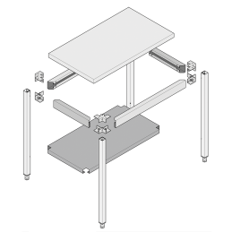 Pieds en tubes carrés de 40 mm renforcés par des tubes en inox de 20x20 mm
