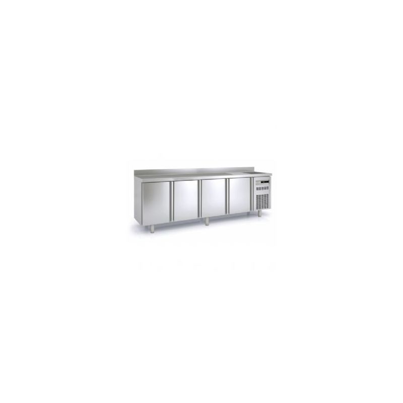1365x700xh850/1100 mm -T° : +2° +8° / +4° +10° C -Capacité : 380 LT - Plan de travail en granit - Structure réfrigérée 'intégrée', 8x GN1/6-150 mm NB : livré sans bacs GN.