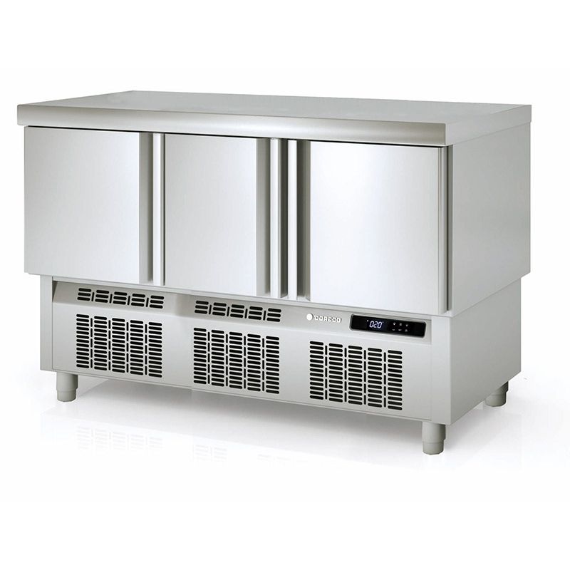 Table réfrigéréeIntérieur et extérieur INOXRéfrigération ventilée ou statiqueAngles arrondisPieds reglablesPanneau de contrôle électroniqueEvaporateur traité entre les portes1 GRILLE par porteGN1/1Sans groupe