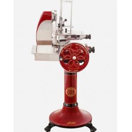RENAISSANCE DU MYTHE DES HISTORIQUES BERKEL ROUGE SÉRIE 1898 Trancheuses à volant B116, la plus traditionnelle de la ligne Berkel. Indiquée pour une utilisation professionnelle même intensive, elle présente une lame de 37 cm de diamètre.