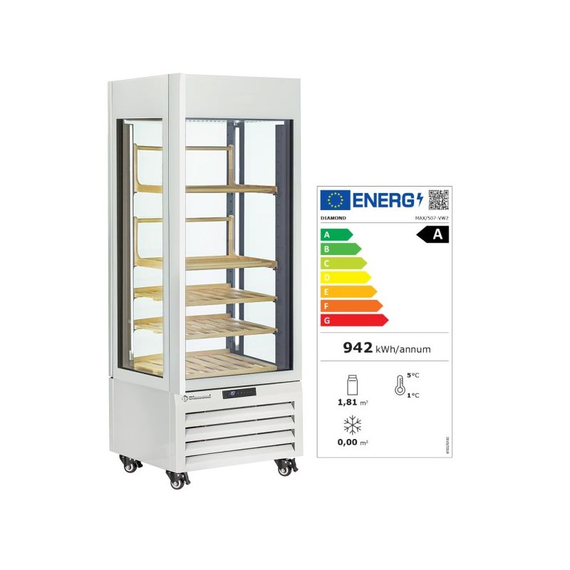 Avec leur design épuré, les vitrines Exalta EVO sauront mettre en valeur vos différents vins... Grande surface d'exposition en verre (EURONORM 400x600 et GASTRONORM 1/1), 4 faces vitrées, porte tout en verre "FULL GLASS", éclairage LED sur chaque montant. Ce sont quelques points qui font de ces vitrines les compagnons idéaux des amateurs de vins exigeants. Disponible en deux versions, support inox (voir réf : ...-VB et ...-VW) ou support horizontal et incliné en bois (voir réf: ...-VB2 et ...-VW2).