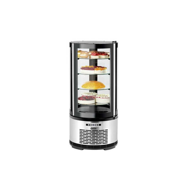 Avec 4 vitres en verre robustes, la vitrine à gâteaux permet une présentation attrayante de tartes, gâteaux ou snacks.