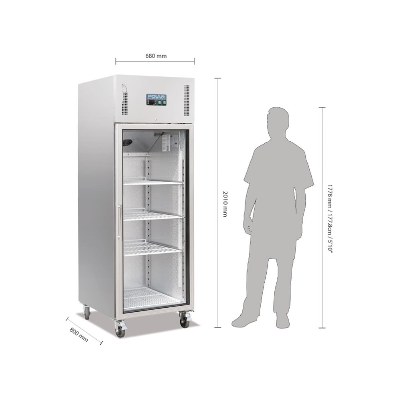 Dim : 436 x 1795 x 396 mm. - T° : +2°C /+8°C. - Voltage : 230 V / 50 Hz. -Type de fluide régrigérant: R134a. - Puissance Frigorifique: 140 W. - capacité 7.