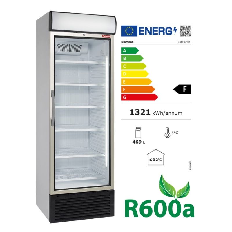 Dim:685x455x675mm -Dim grille: 600x300mm -Double vitrage -Refroidissement par ventilation forcée 2 ventilateurs -Dégivrage automatique -Vitre de sécurité -Puissance:160W -Tension:230V