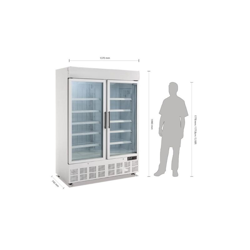 Dim: 1525x1100x1224 mm - Surface: 1.16 m² - Stockage: 0.58 m3 - Portes: 2 / 0 - Réfrigérant: R-290 - Puissance Frigorifique : 796 W - Puissance nominal: 1066 W (électrique)