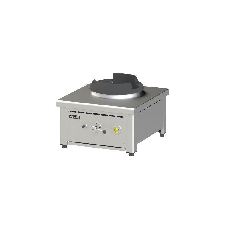 - 600x650x450 mm- Brûleur à 3 pipes en fonte- Chapeaux en inox rainurée diamètre 285 mm (28Kw)- Couronne à WOK fixe